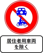 この標識のある道路の沿道に住んでいる人のクルマ以外は通行できません。(抜け道として通行するクルマを排除するため。)
