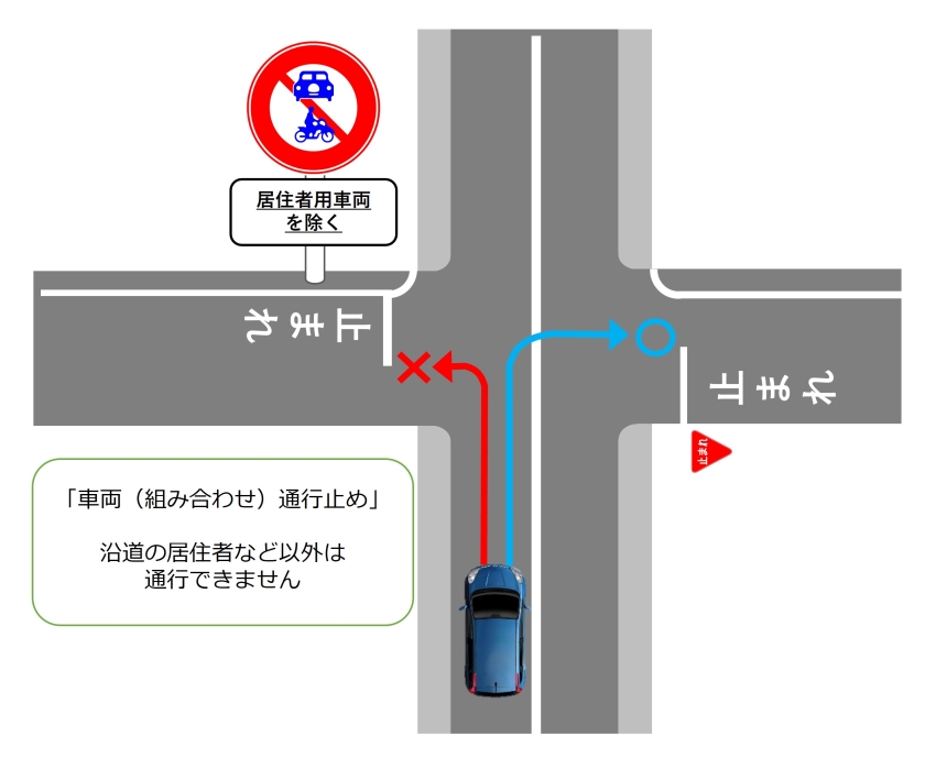 (沿道に車庫があるなどの理由がある場合は、事前に警察署長の許可を受けることで通行が可能になります。)